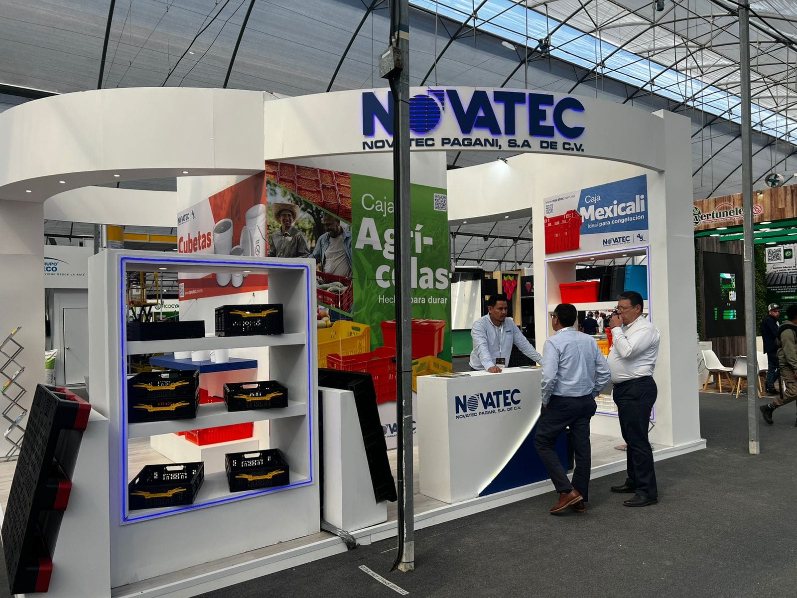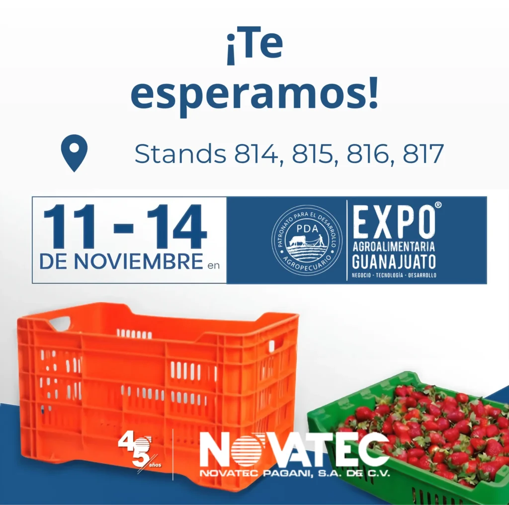 En nuestros stands, exhibiremos productos diseñados para el sector agrícola y hortícola: caja Jacona, caja de espárrago, base de invernadero, macetas y caja Lima, diseñadas para optimizar la eficiencia operativa y fortalecer las cadenas de suministro.