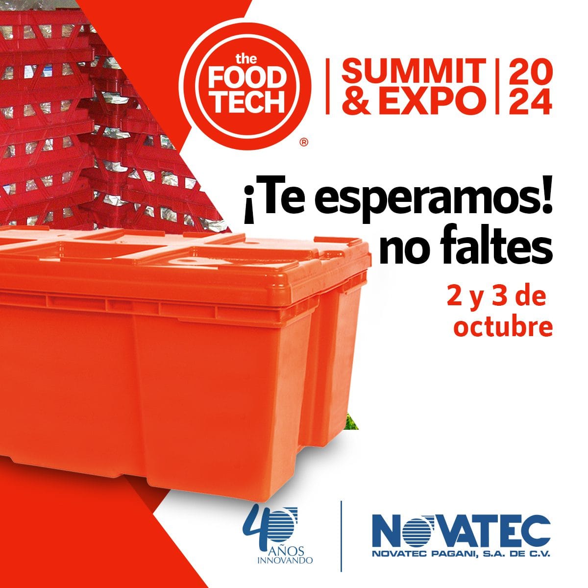 No dejes de visitarnos en THE FOOD TECH ®️ | SUMMIT & EXPO, un evento de la industria alimentaria y de la bebida donde encontrarás distintas soluciones que tenemos para el almacenamiento y distribución de productos. Estaremos encantados de atender los requerimientos logísticos de tu empresa o negocio.